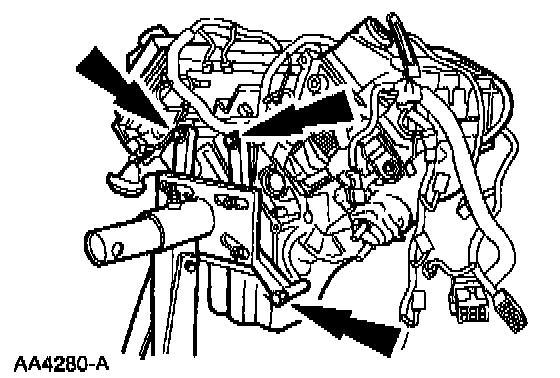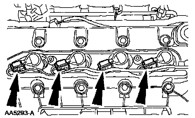 22. Separate the fuel charging wiring from the fuel injection supply manifold studs in three places.