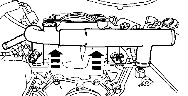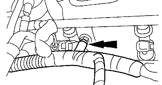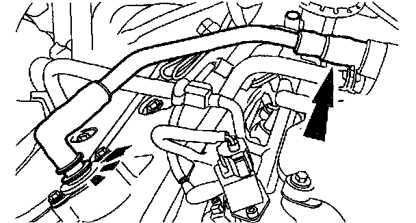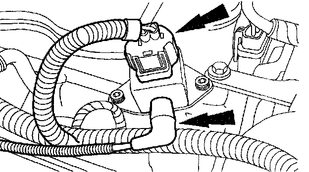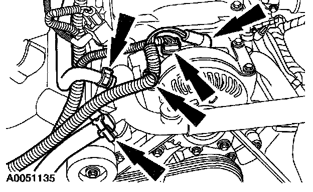 15. Disconnect the coolant hoses, electrical connectors, and the wiring harness retainer.