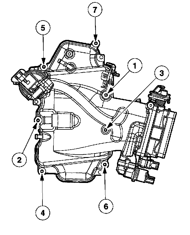 14. Remove the upper intake manifold assembly bolts in the sequence shown and remove the intake manifold assembly.