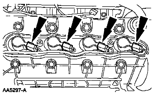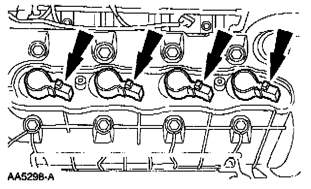 47. Remove the bolts and the RH and LH timing chain tensioners.
