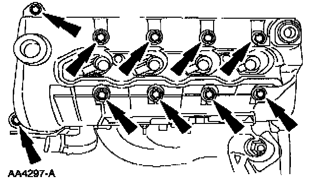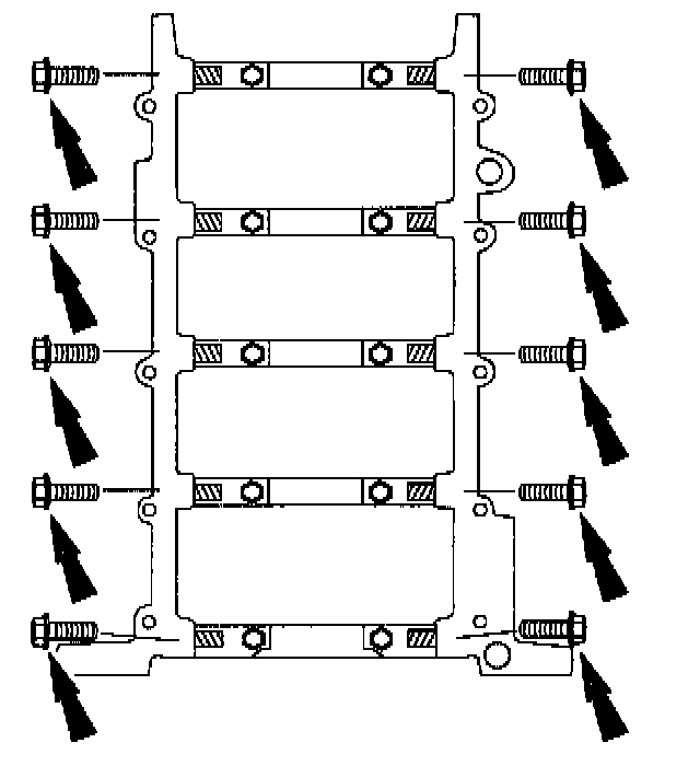 24. Remove the eight bolts and two studs in the sequence shown, and raise the lower intake manifold slightly.