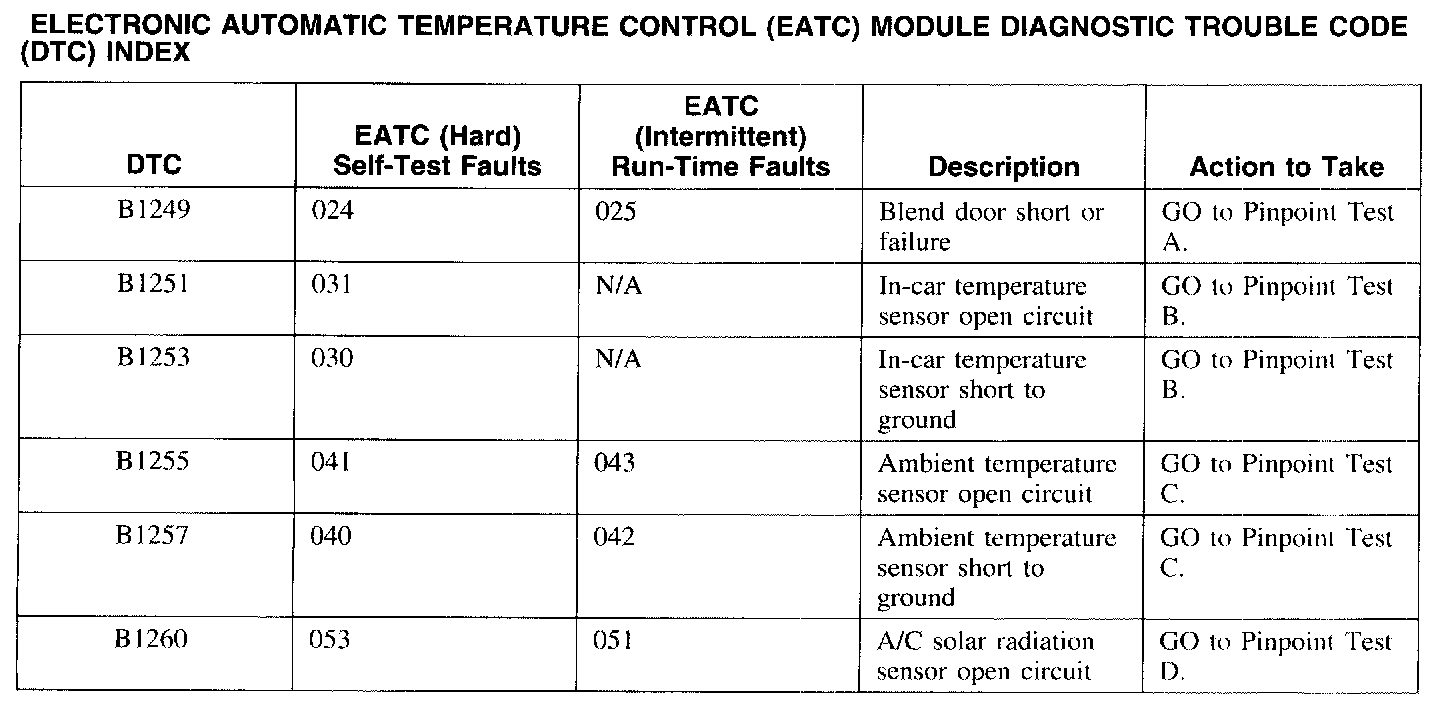 DTC Index B1249 - B1260:
