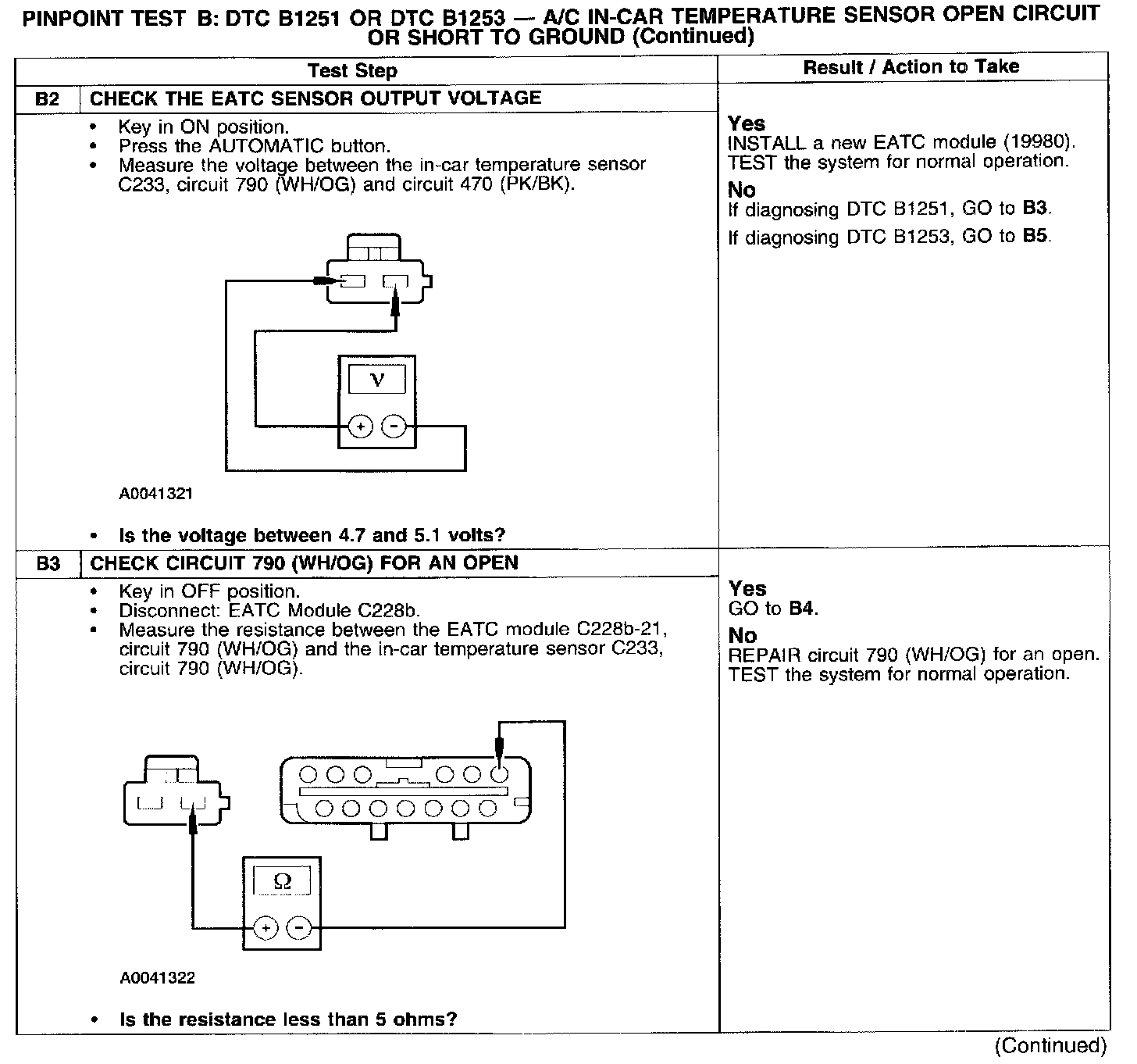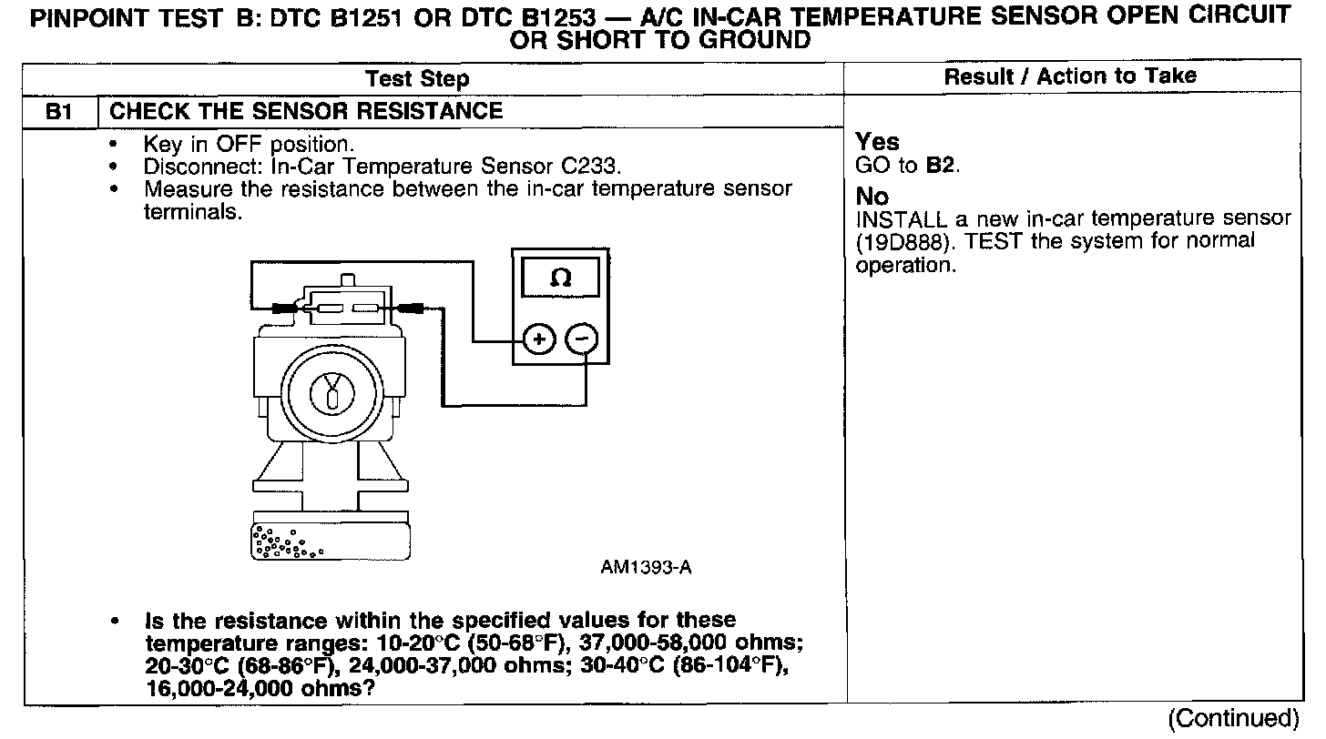 Test B: DTC B1251/ DTC B1253 A/C In Car Temp Sensor Open
