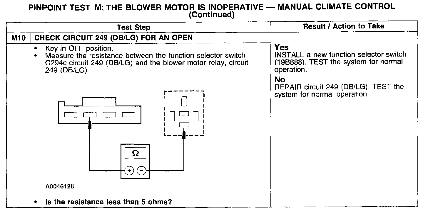 Test M: Blower Motor Is Inoperative - Manual Climate Control