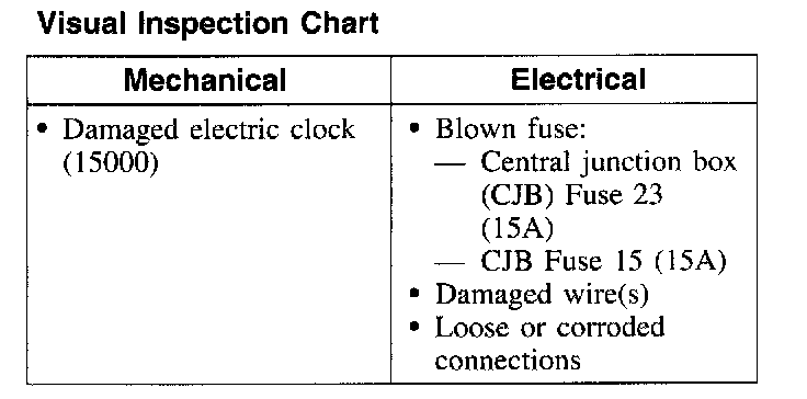1. Verify the customer concern by operating the system.Visual Inspection Chart: