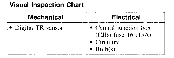 1. Verify the customer concern by operating the system.Visual Inspection Chart: