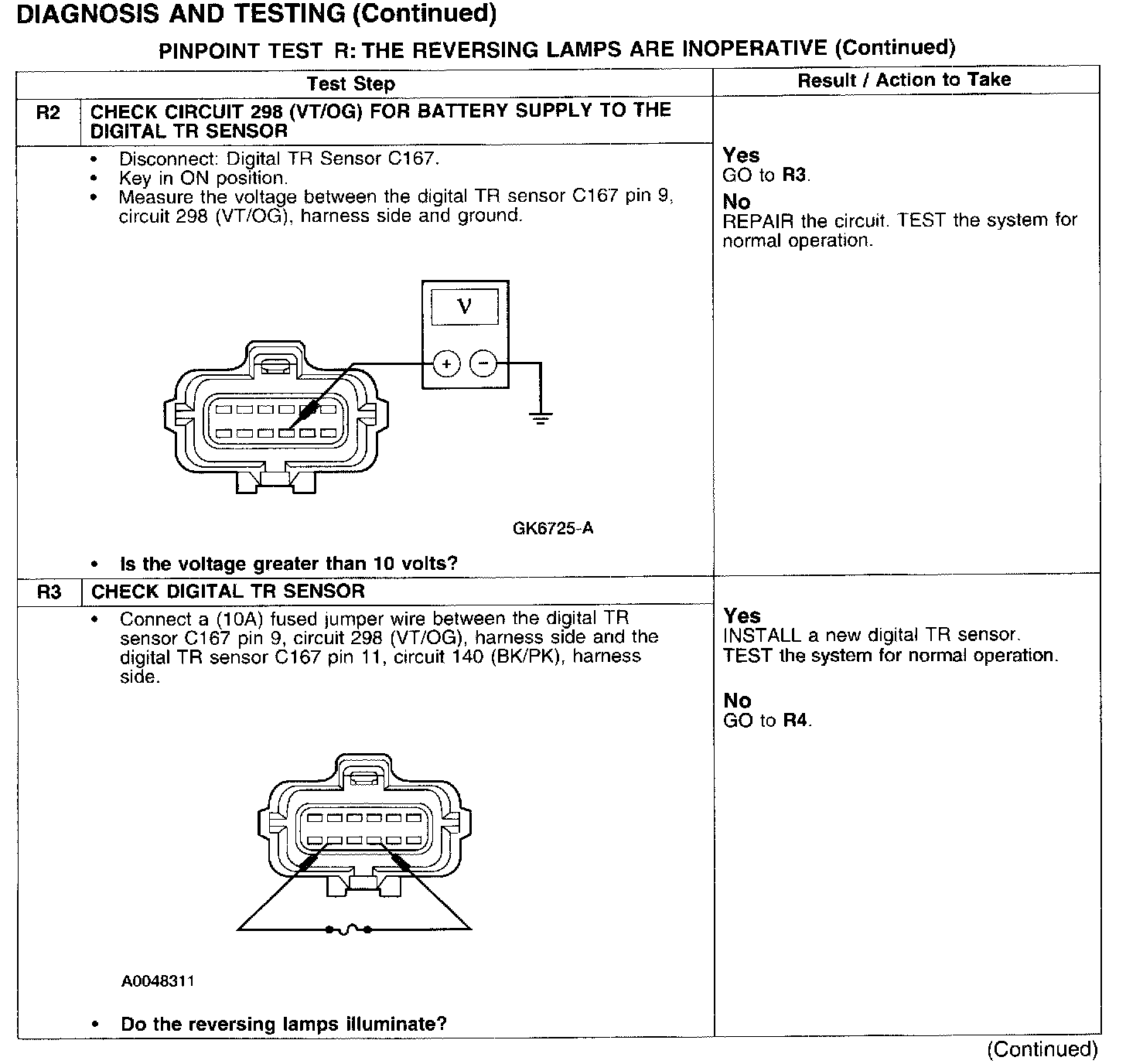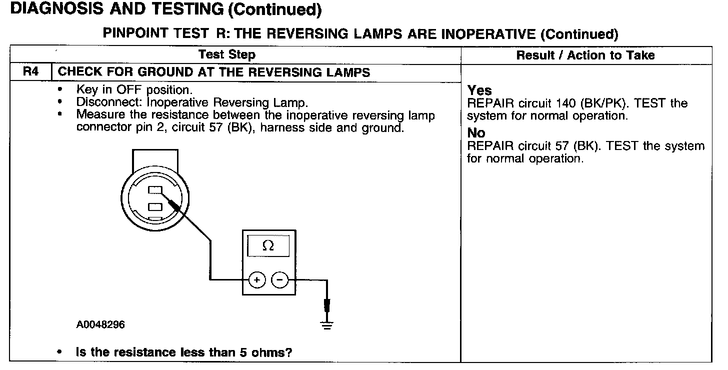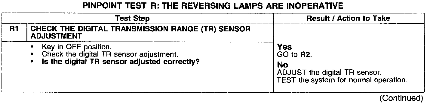 PINPOINT TEST R: THE REVERSING LAMPS ARE INOPERATIVE