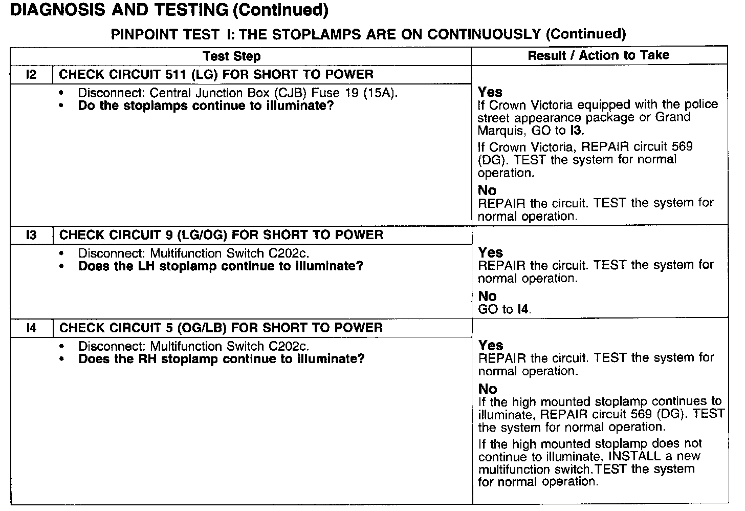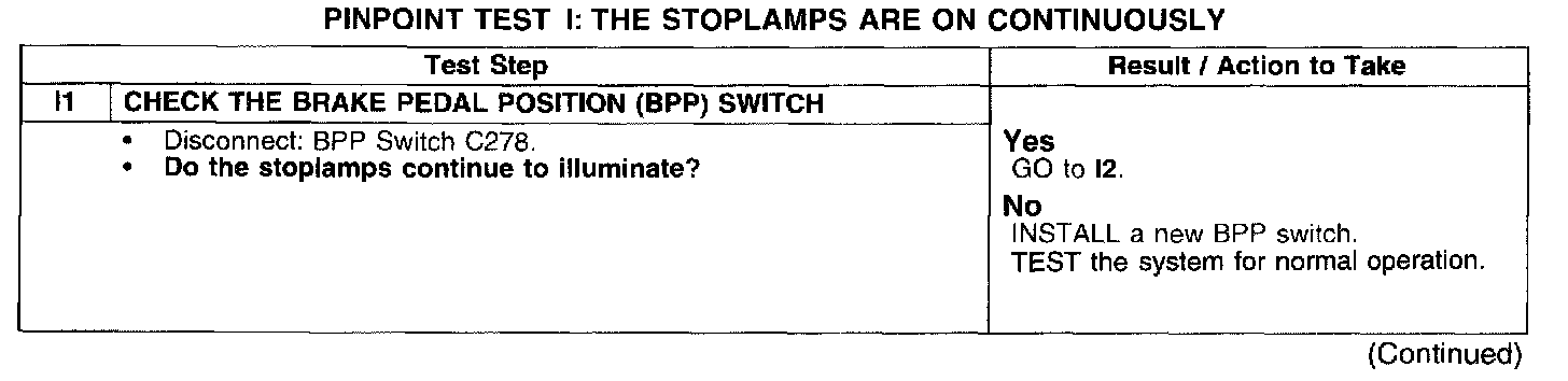 PINPOINT TEST I: THE STOPLAMPS ARE ON CONTINUOUSLY
