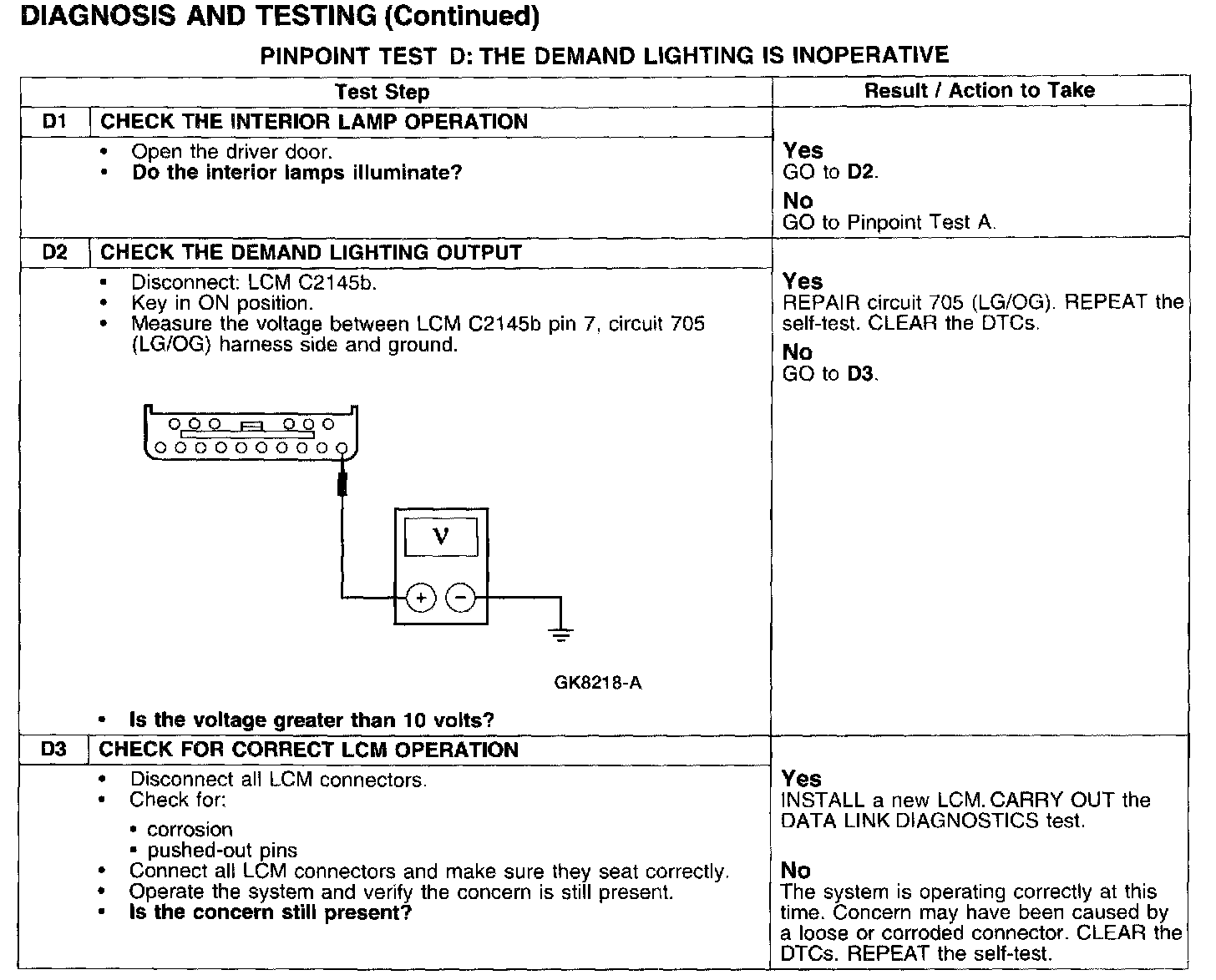 PINPOINT TEST D: THE DEMAND LIGHTING IS INOPERATIVE