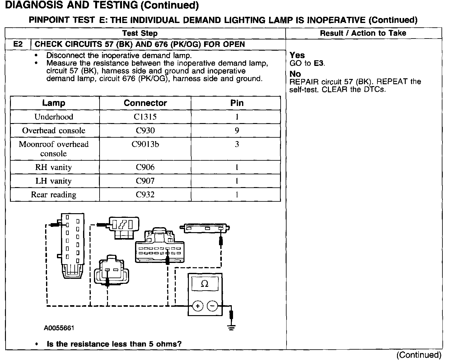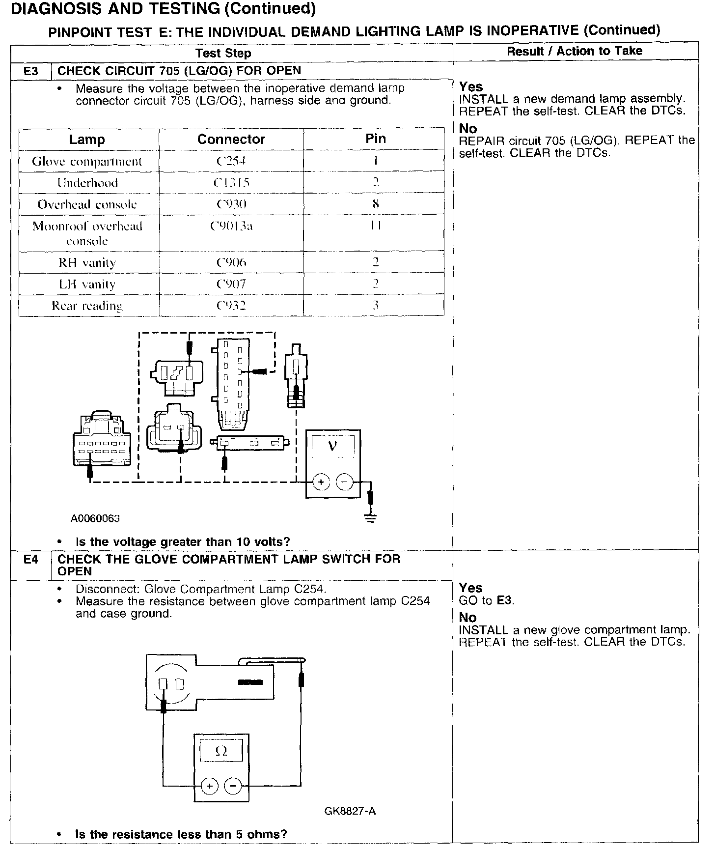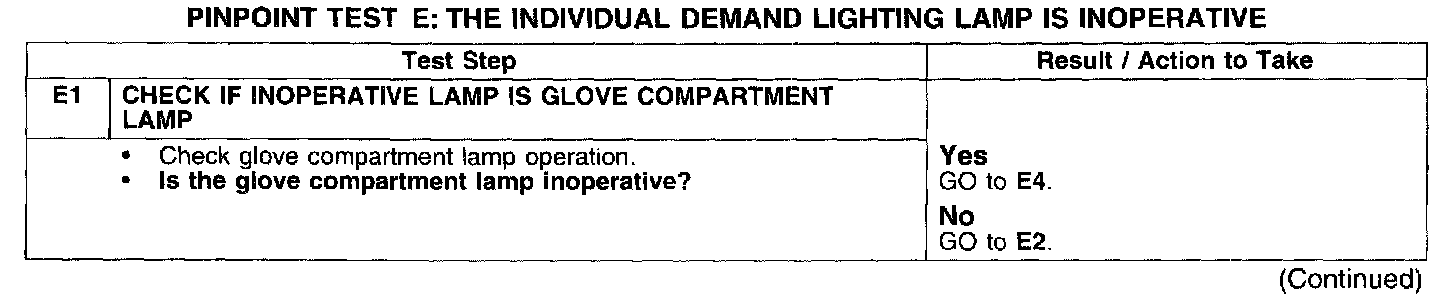 PINPOINT TEST E: THE INDIVIDUAL DEMAND LIGHTING IS INOPERATIVE