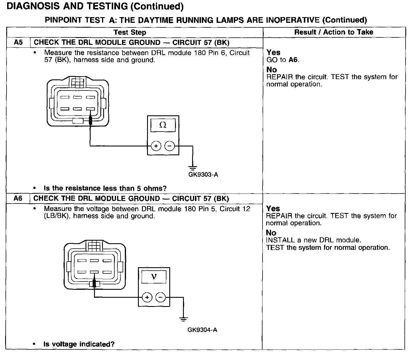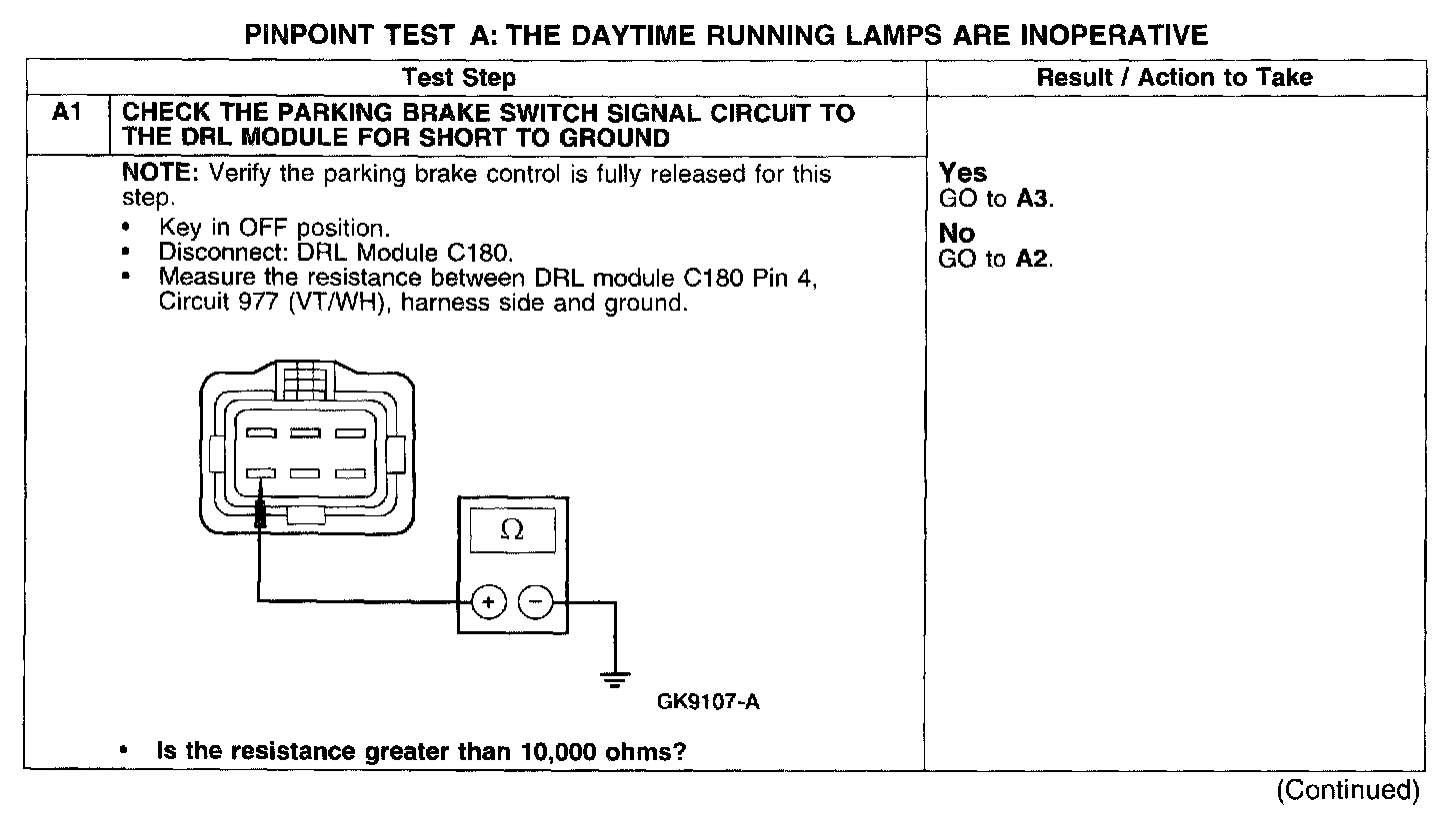 PINPOINT TEST A: THE DAYTIME RUNNING LAMPS ARE INOPERATIVE