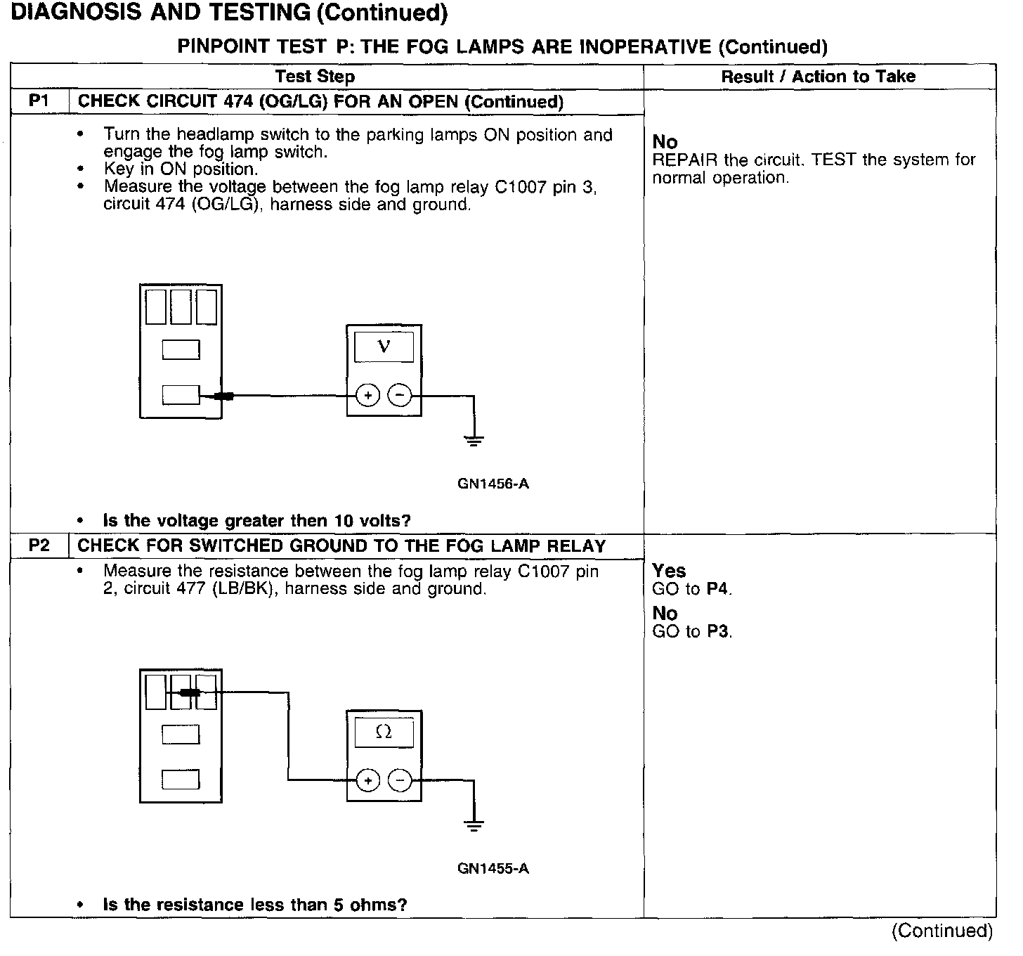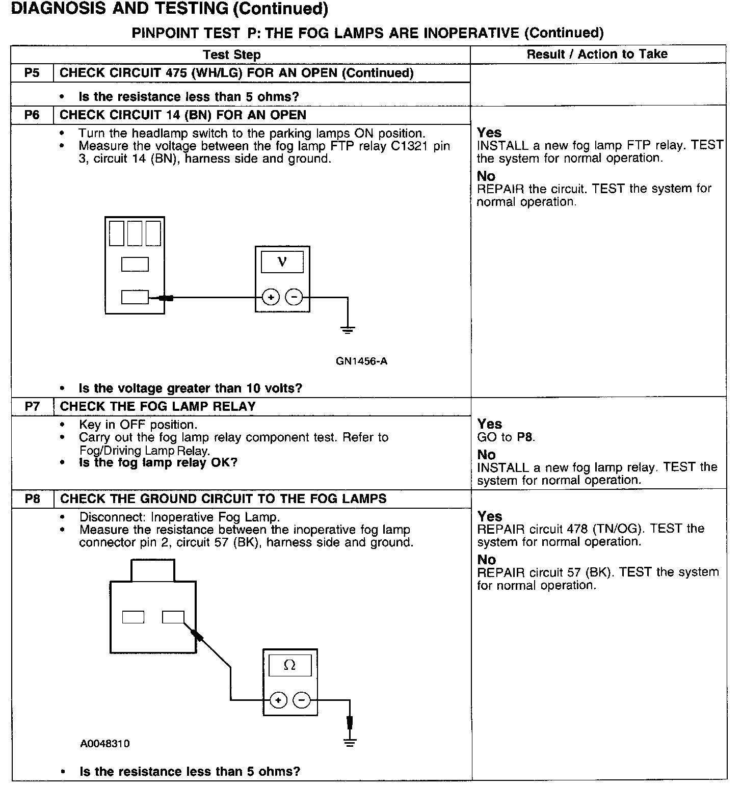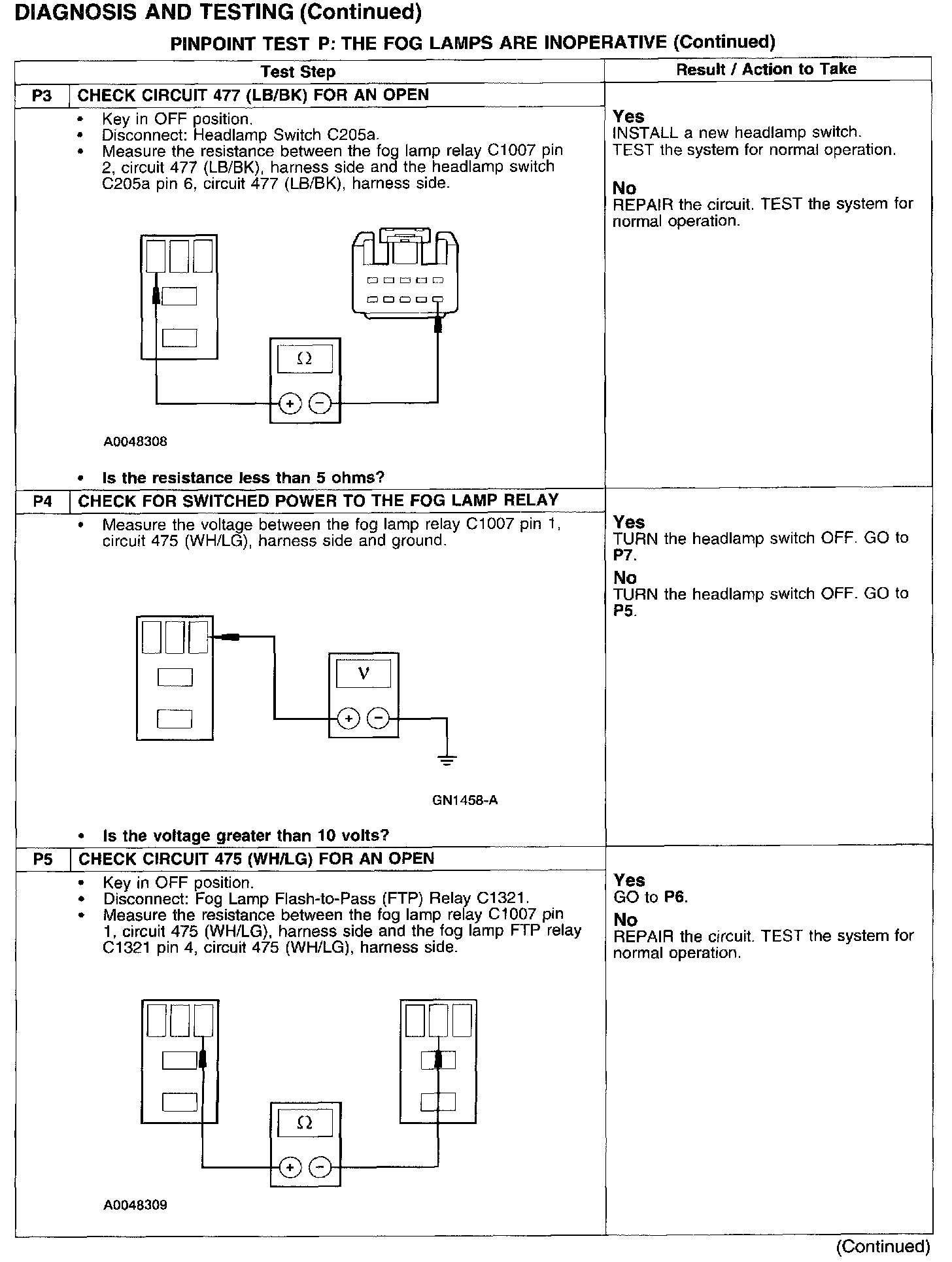 PINPOINT TEST P: THE FOG LAMPS ARE INOPERATIVE