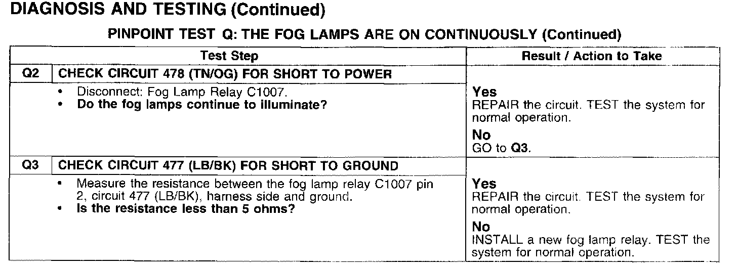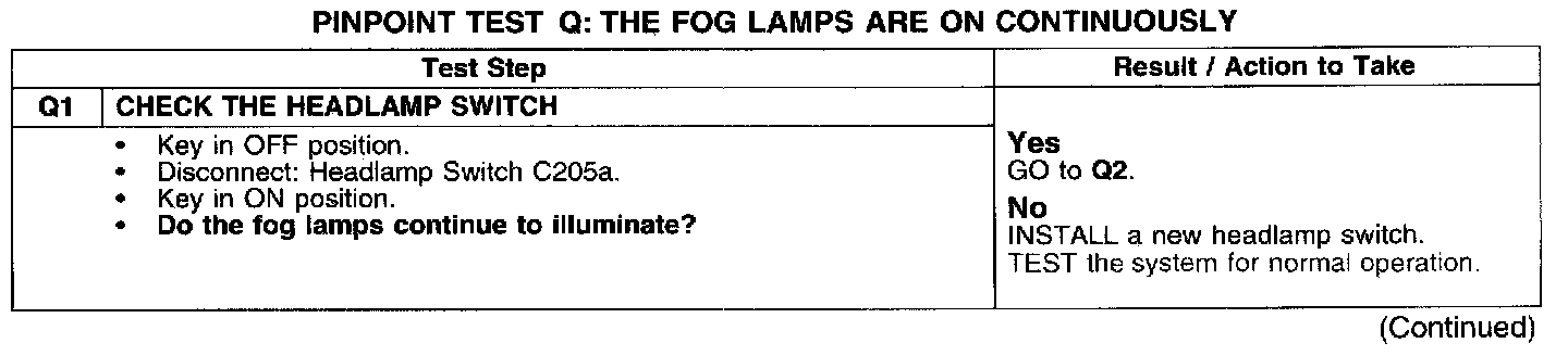 PINPOINT TEST Q: THE FOG LAMPS ARE ON CONTINUOUSLY