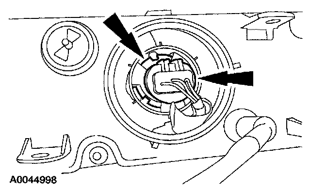 7. Disconnect the electrical connector, grasp the headlamp bulb by its base and remove the bulb.
