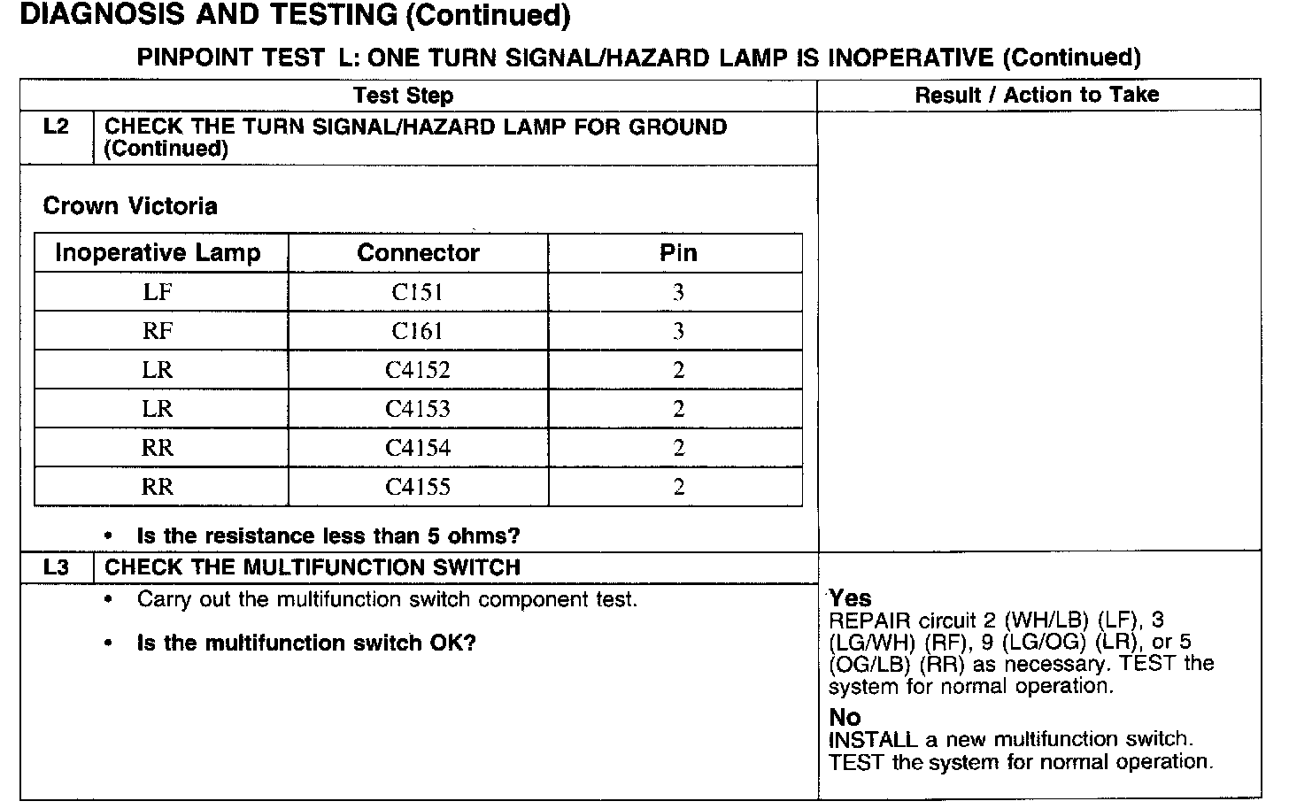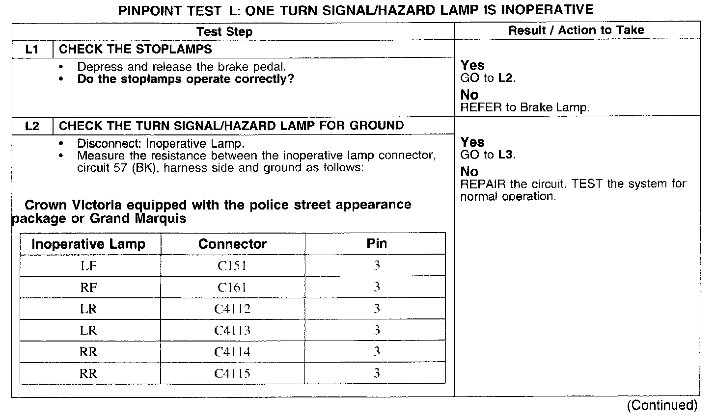 PINPOINT TEST L: ONE TURN SIGNAL/HAZARD LAMP IS INOPERATIVE