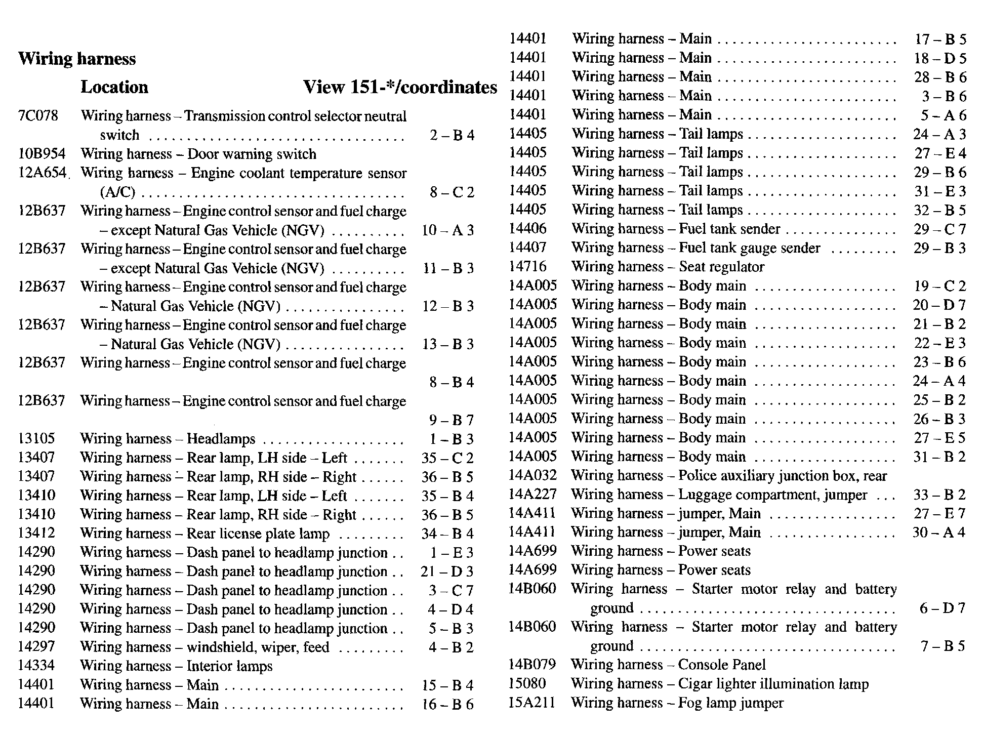 Harness Location Index