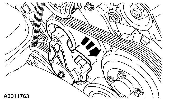 1. Rotate the tensioner clockwise and remove the drive belt.