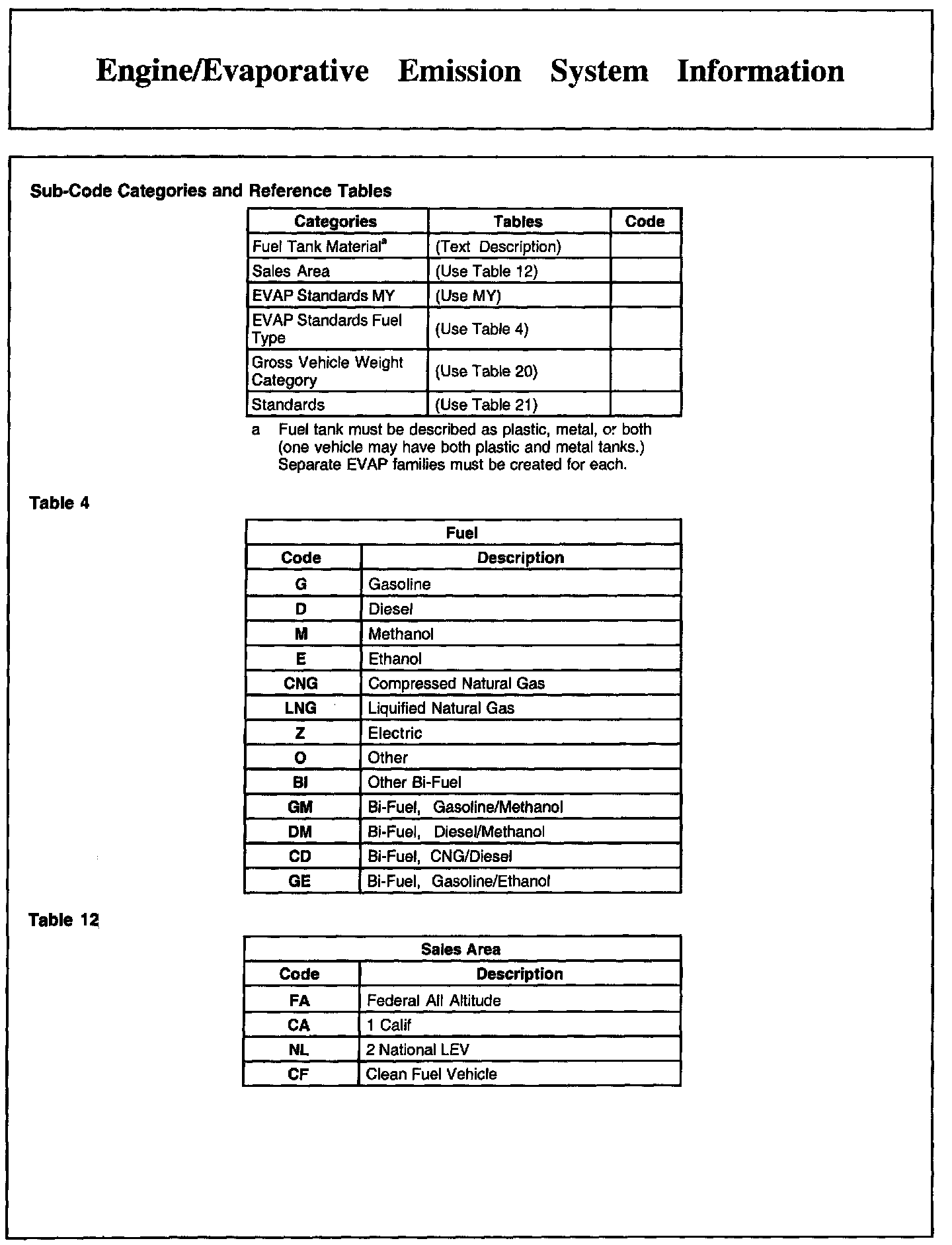 Engine/Evaporative Emission System Information