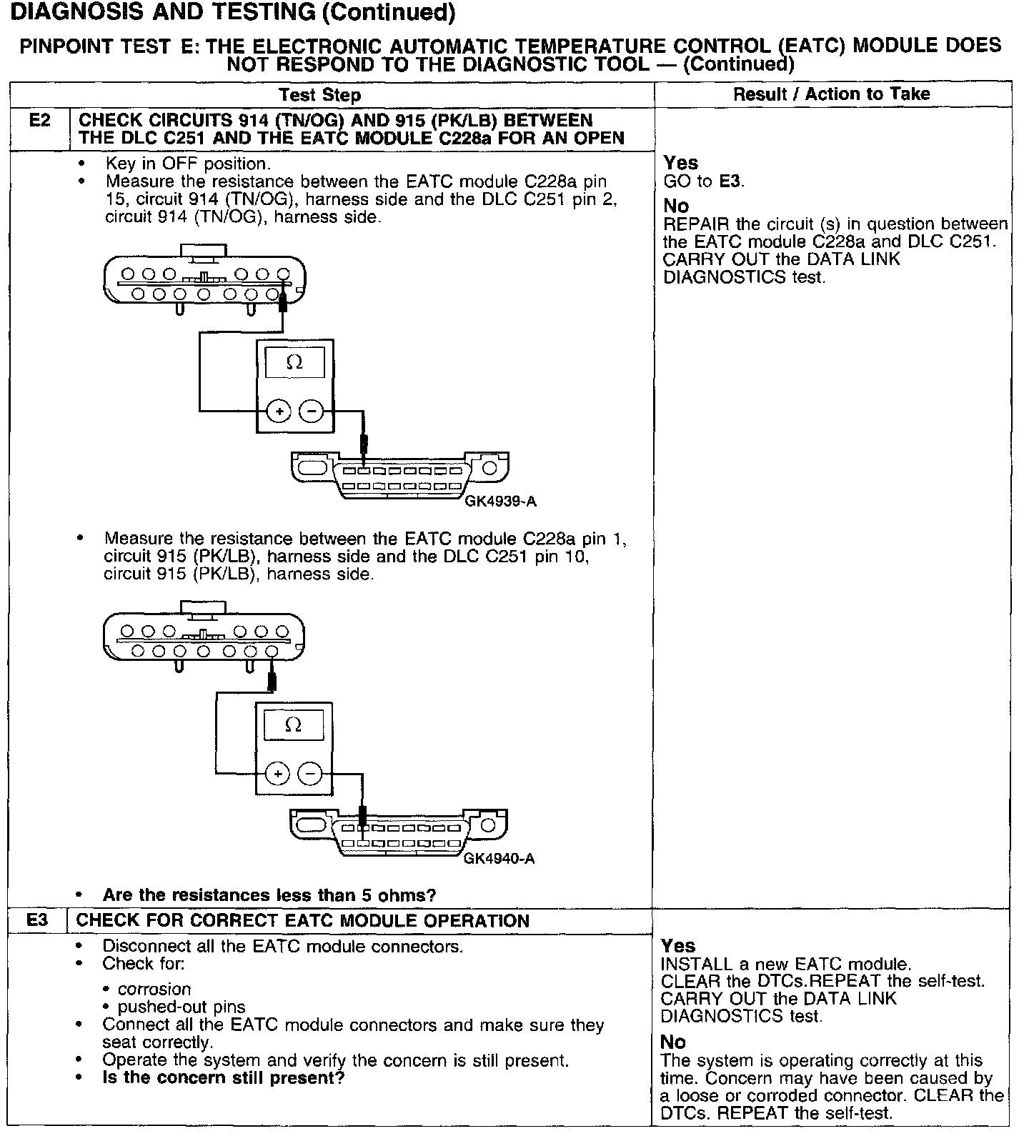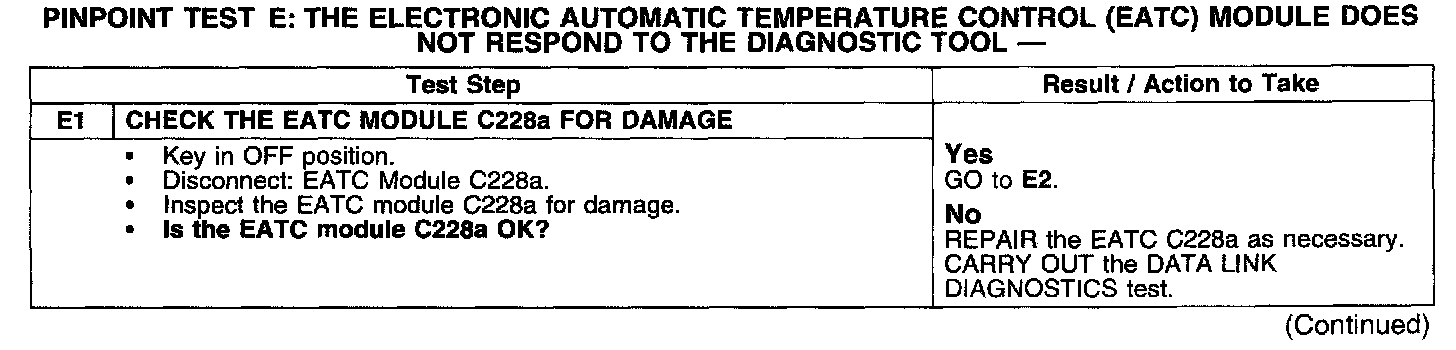 PINPOINT TEST E: THE ELECTRONIC AUTOMATIC TEMPERATURE CONTROL (EATC) MODULE DOES NOT RESPOND TO THE DIAGNOSTIC TOOL