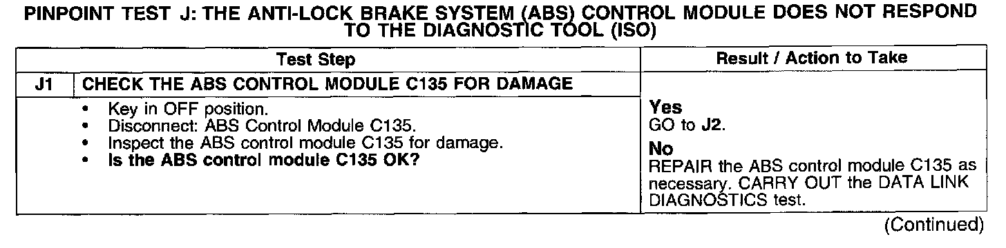 PINPOINT TEST J: THE ANTI-LOCK BRAKE SYSTEM (ABS) CONTROL MODULE DOES NOT RESPOND TO THE DIAGNOSTIC TOOL (ISO)