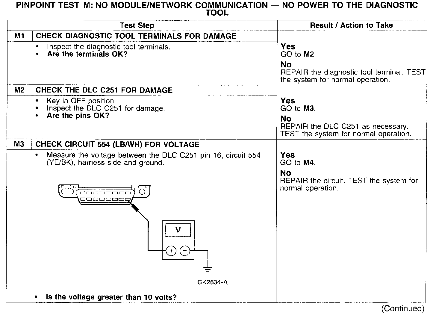 PINPOINT TEST M: NO MODULE/NETWORK COMMUNICATION - NO POWER TO THE DIAGNOSTIC TOOL