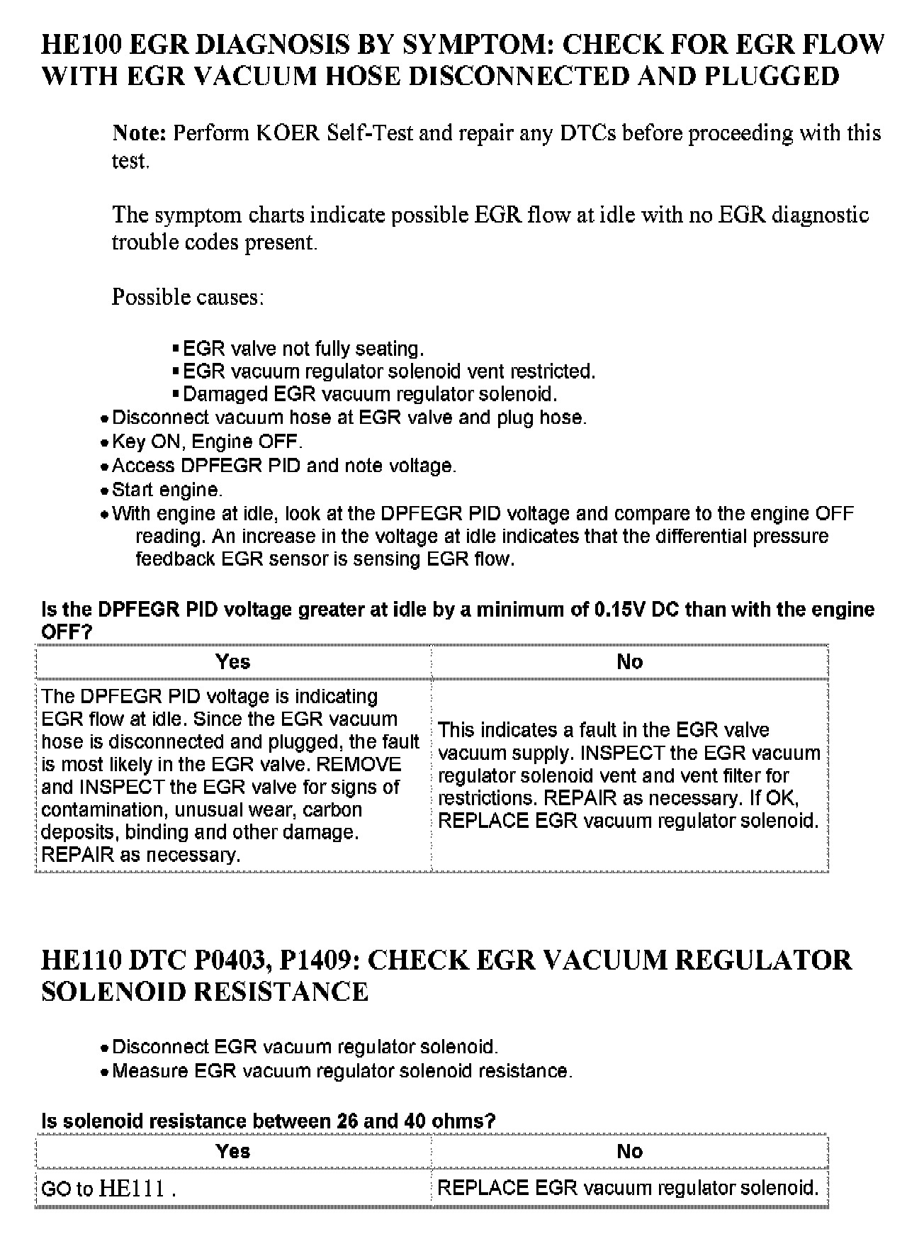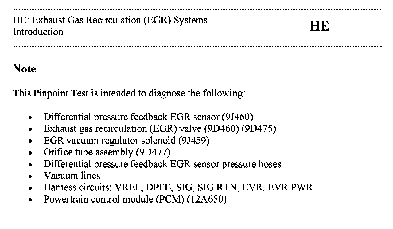 Tests HE: Exhaust Gas Recirculation (EGR) Systems