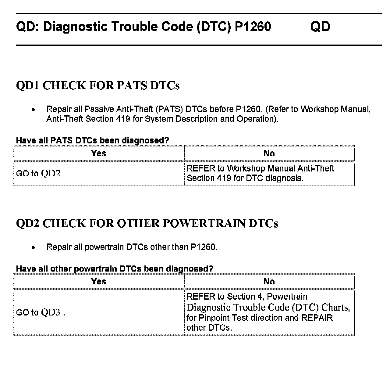 Tests QD: Diagnostic Trouble Code (DTC) P1260