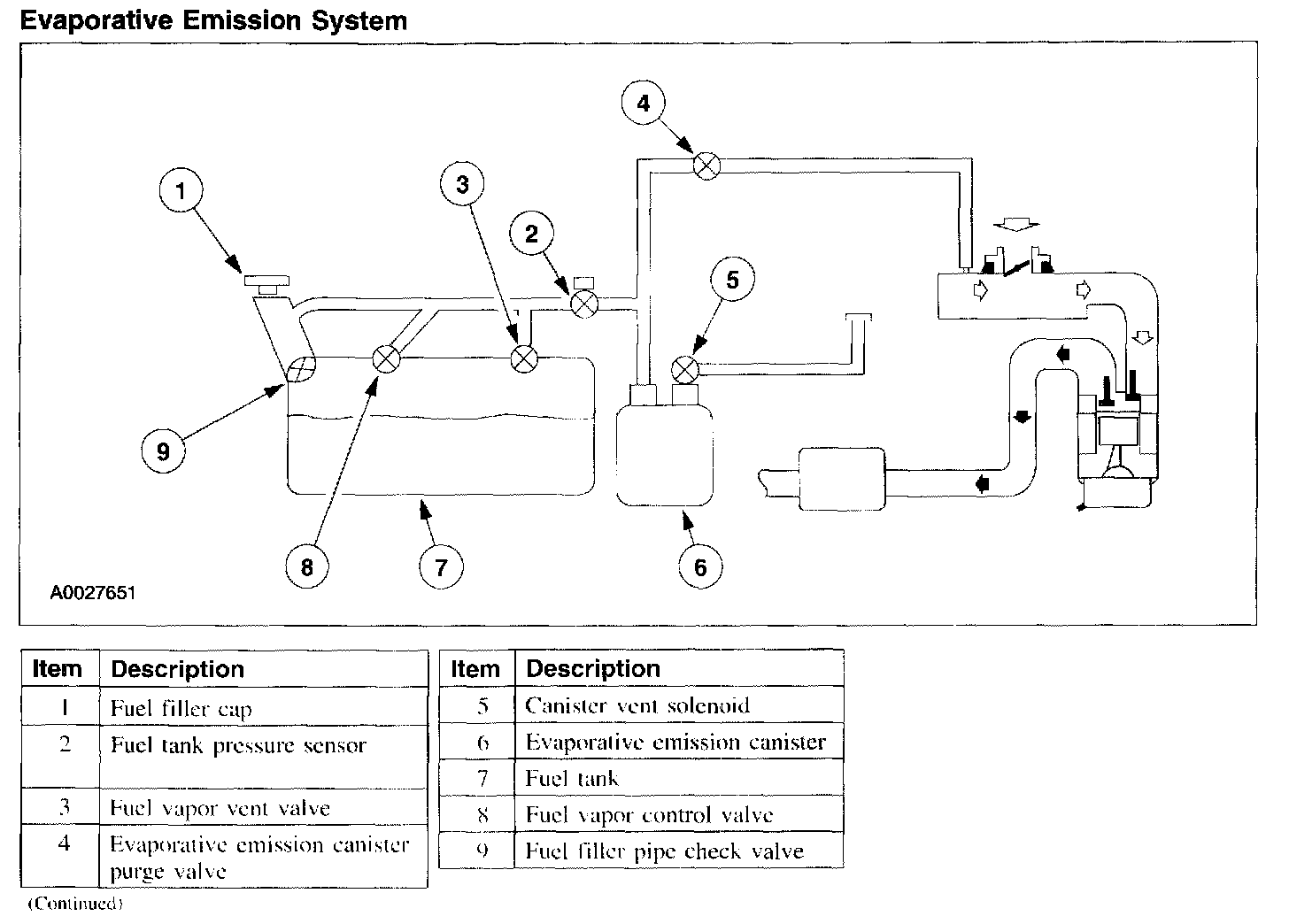 ^ Fuel vapor tubing connects the fuel vapor control valve to the EVAP canister. This routes the fuel tank vapors, displaced by the incoming liquid, to the EVAP canister.