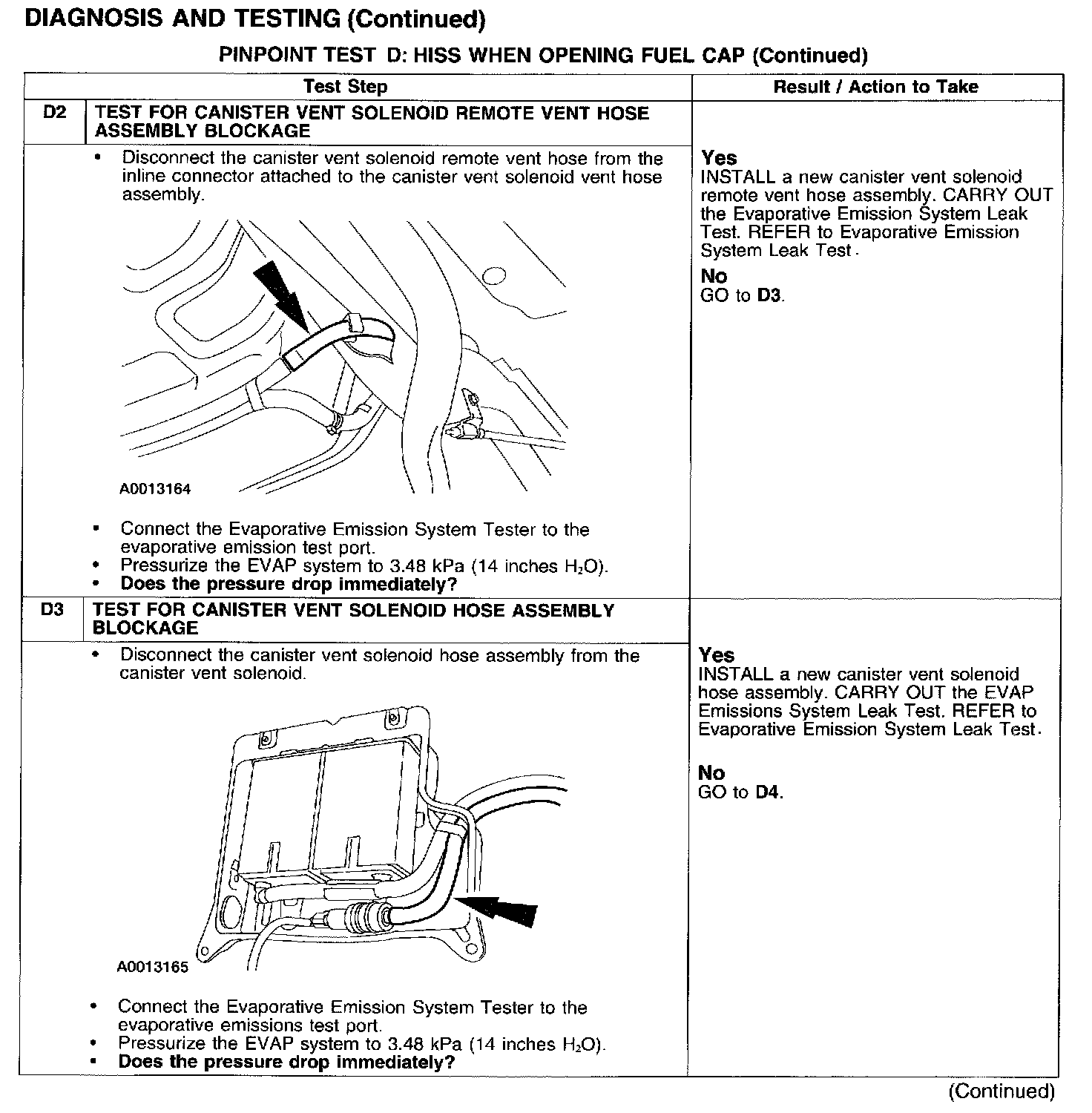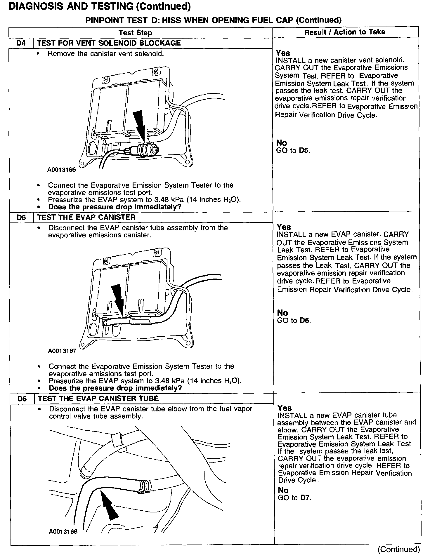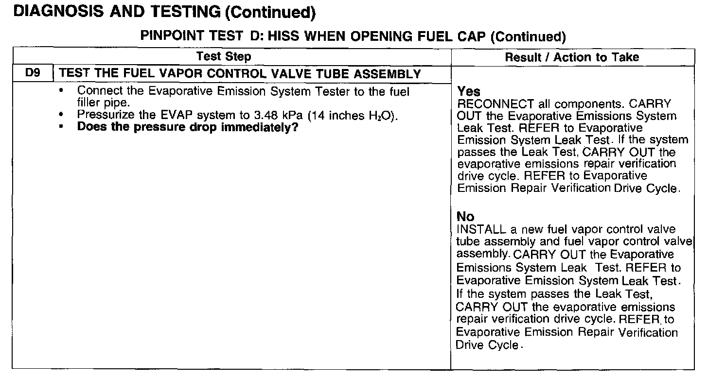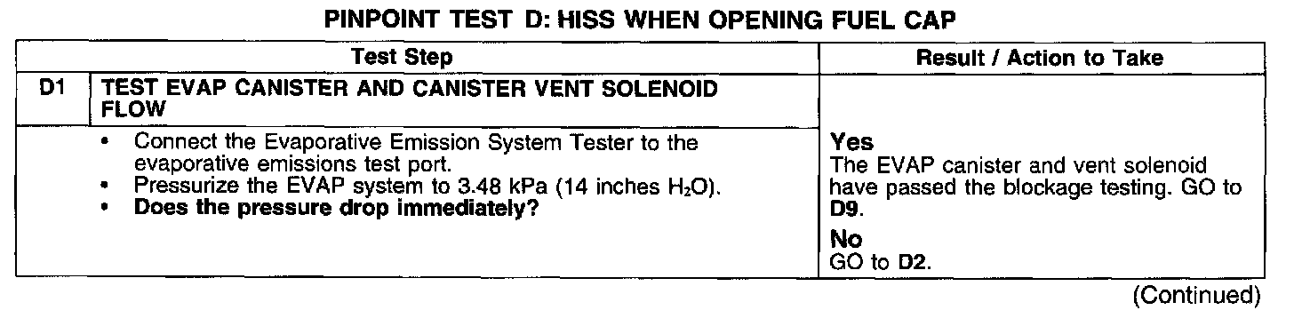 PINPOINT TEST D: HISS WHEN OPENING FUEL CAP