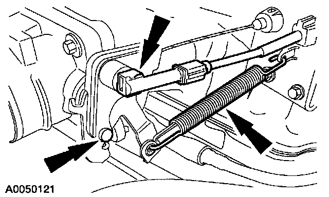 2. Remove the spring and disconnect the accelerator and speed control cables.