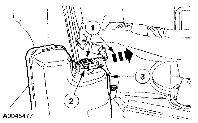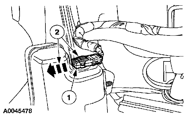 2 Release the two connector tabs (one shown) by pushing in on them and disconnect the side air bag module.