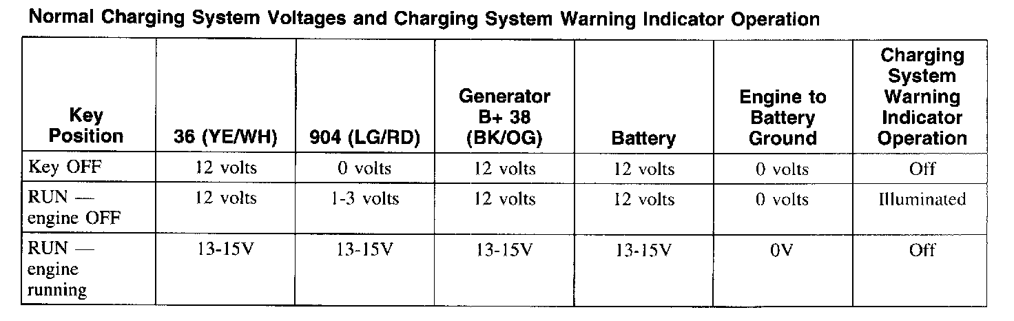Normal Charging System Voltages And Charging System Warning Indicator Operation: