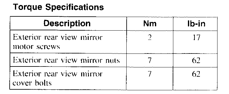 Torque Specifications: