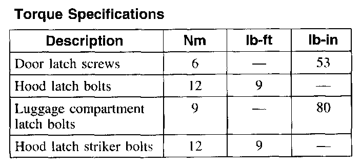 Torque Specifications: