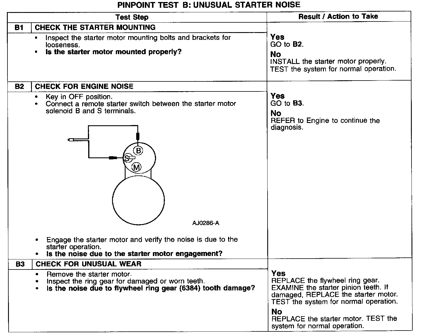 PINPOINT TEST B: UNUSUAL STARTER NOISE