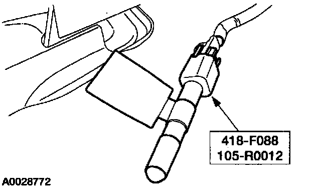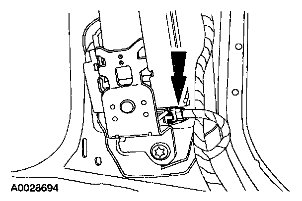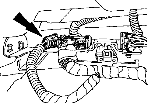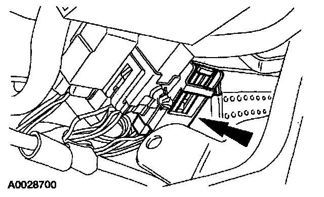 7. From under the driver scat, remove the restraint system diagnostic tool from the driver seat side air bag floor electrical connector.
