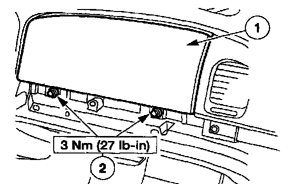 23. Through the glove compartment opening, install the passenger air bag module bolts.