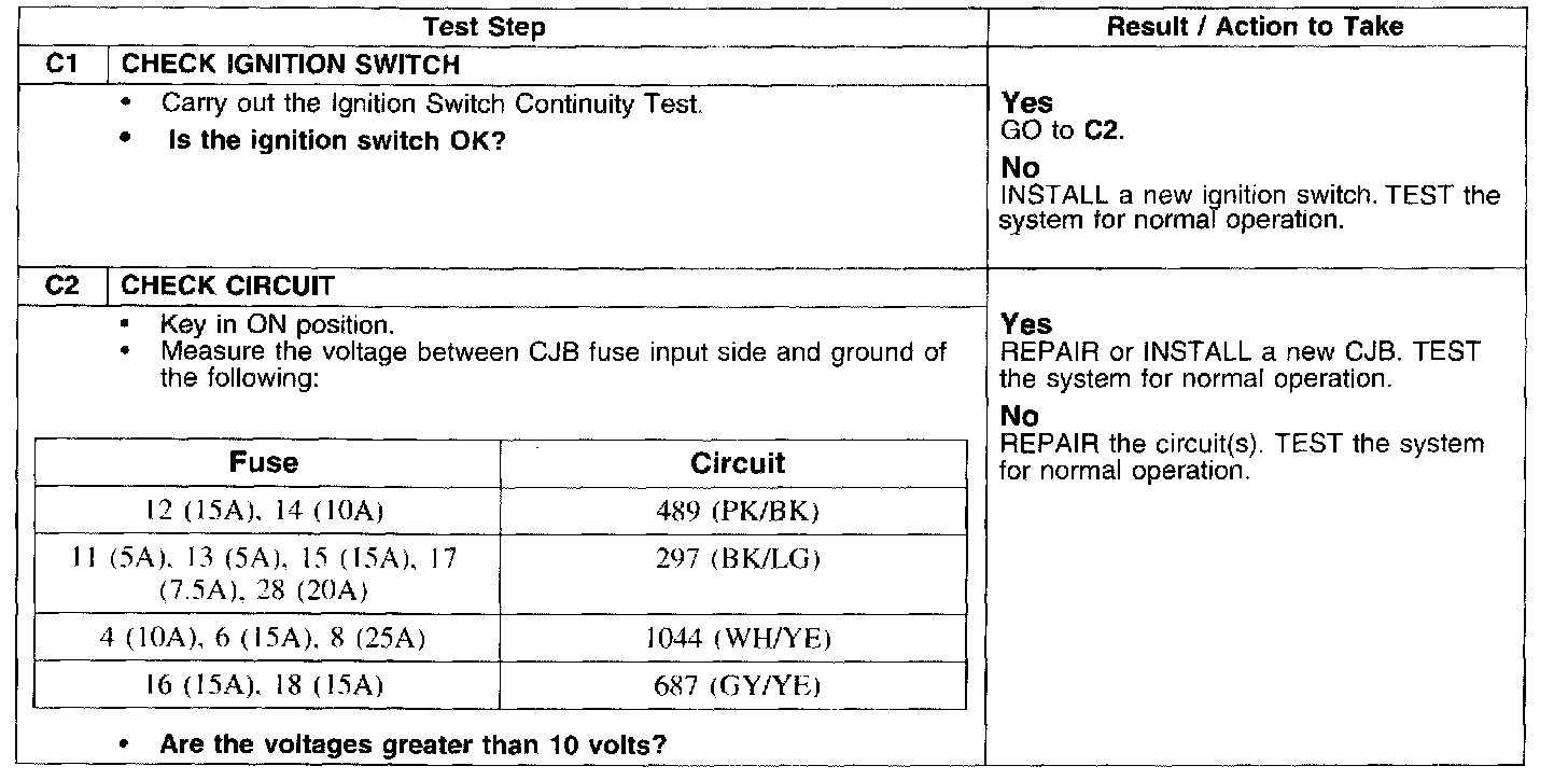 PINPOINT TEST C: NO POWER IN RUN POSITION