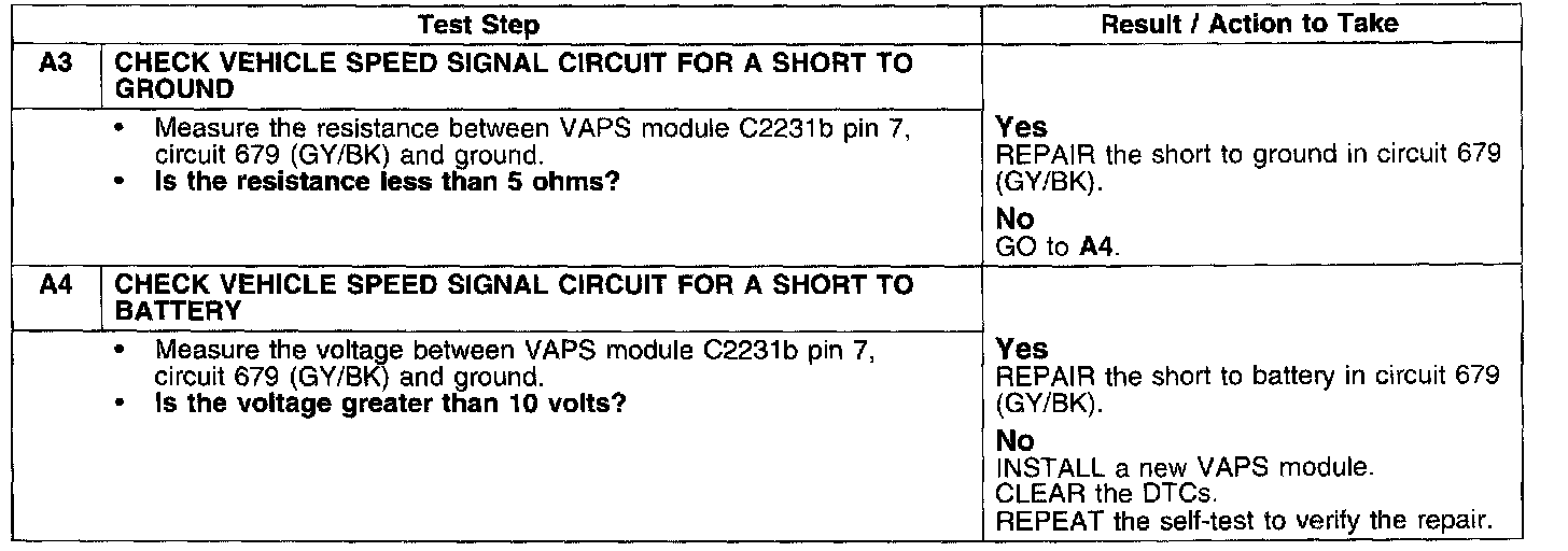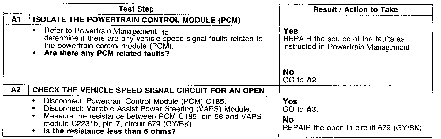 PINPOINT TEST A: DTC C1445 VEHICLE SPEED SIGNAL CIRCUIT FAILURE