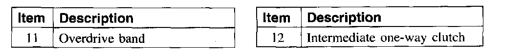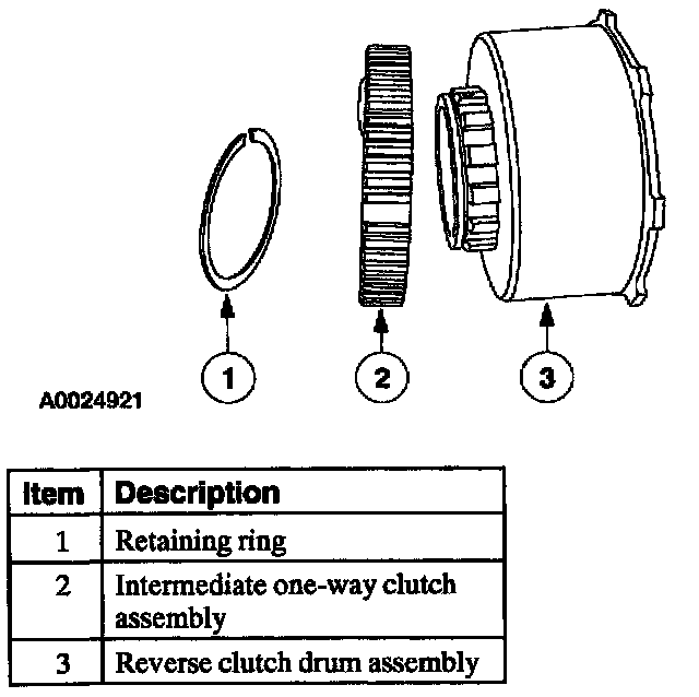 The intermediate one-way clutch works with the intermediate friction clutch to hold the reverse clutch drum and reverse sun gear stationary in second gear during acceleration. The intermediate one-way clutch freewheels in third gear and during coasting in second gear, (D) and D ranges.