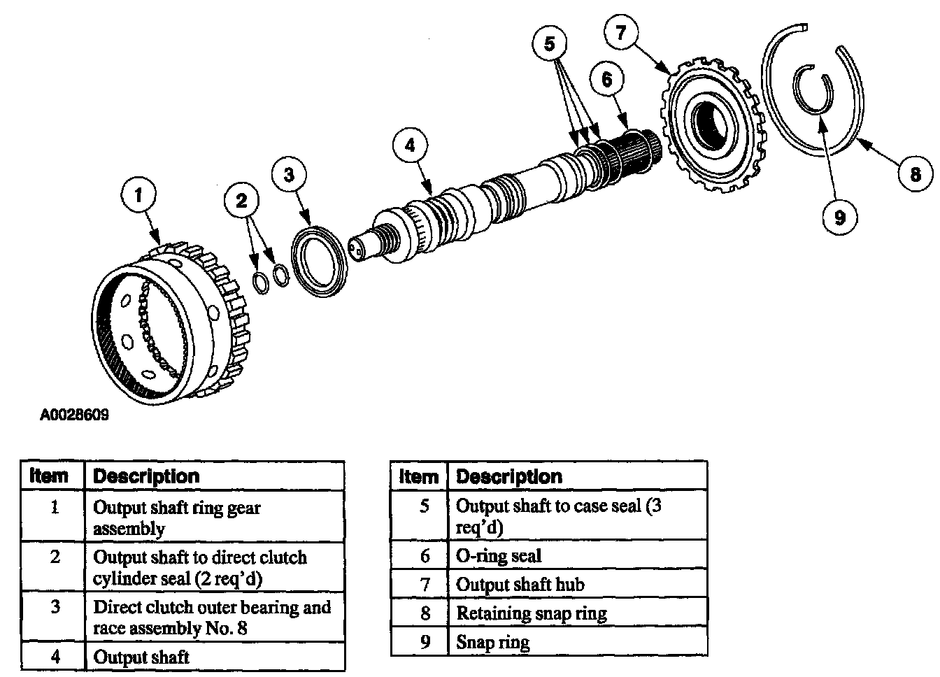 Output Shaft, Direct Clutch Cylinder and Ring Gear Disassembled View