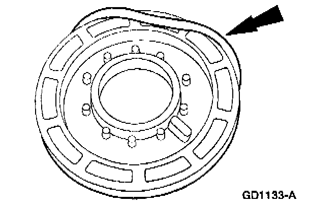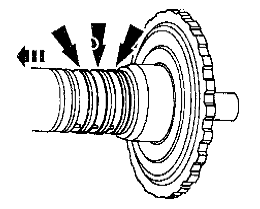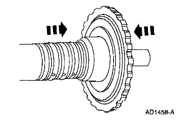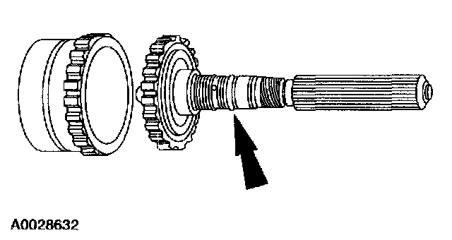 12. Check the clutch hub thrust surfaces for scores and clutch hub splines for wear.