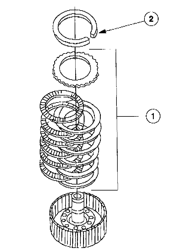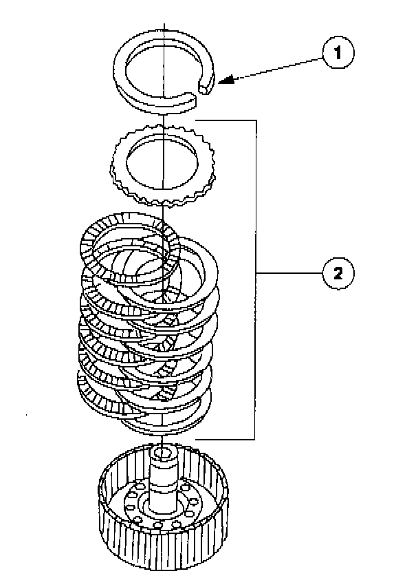 1 Alternate external spline (steel) plates and internal spline (friction) plates, starting with a steel plate and ending with the friction plate.