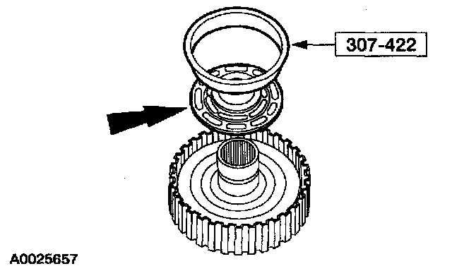 2 Install the clutch pack retaining ring.