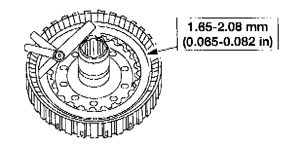 7. Use a feeler gauge to check the clearance between the clutch pack selective retaining ring and the pressure plate.