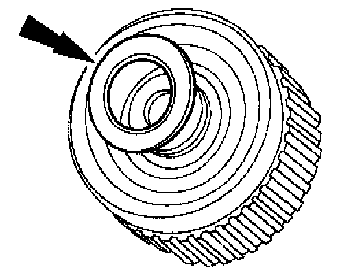 2. Install the clutch piston outer seal so that when the piston is installed the sealing lip points toward the bottom of the cylinder.