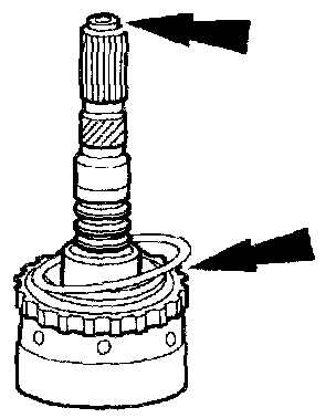 NOTE: Inspect the output shaft bearing surfaces for scores. Inspect the output shaft splines for wear. Inspect all bushings.