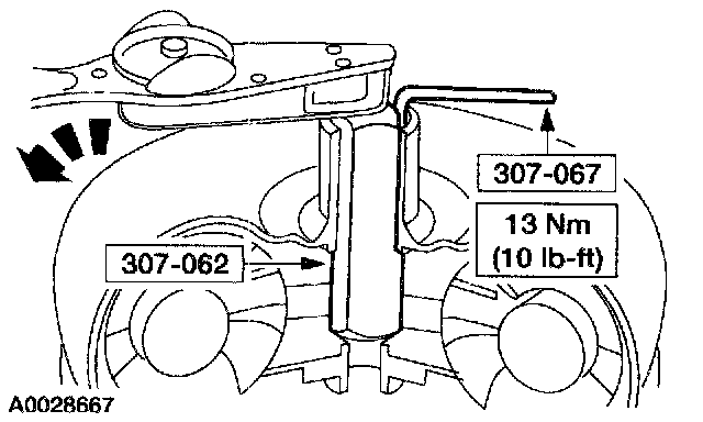 3. Use a torque wrench to turn the special tool counterclockwise while holding the special tool stationary.
