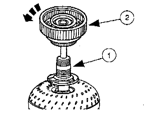 ^ The turbine and torque converter clutch assemblies should rotate in both directions, not exceeding maximum torque of 9.5 Nm (7 ft. lbs.), without any signs of metallic interference or scraping noise.