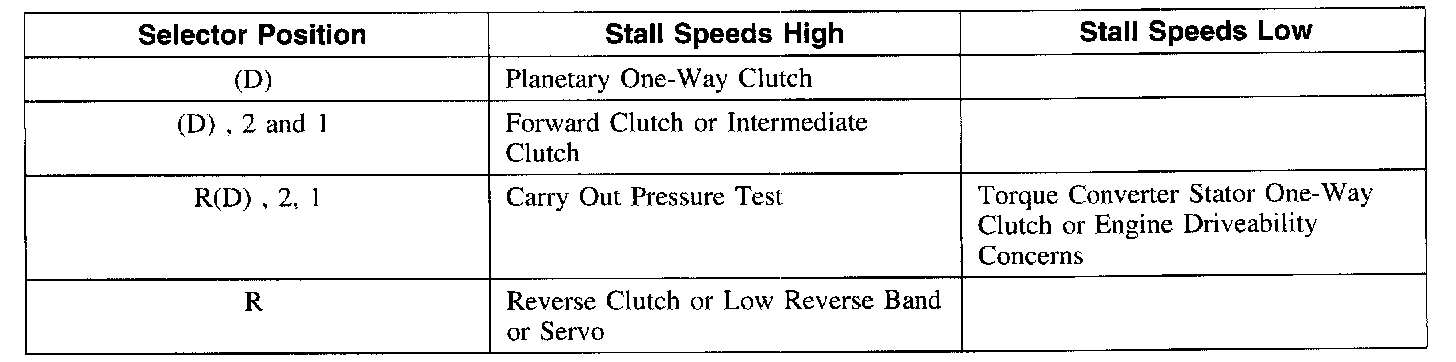 6. Refer to the Stall Speed Diagnosis Chart for corrective actions.